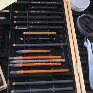 - Crayons fusain compressé extra softs : WINSOR & NEWTON 2X3 pcs Studio Collection / GENERAL’S Kit-12 pcs / DERWENT – 6 pcs